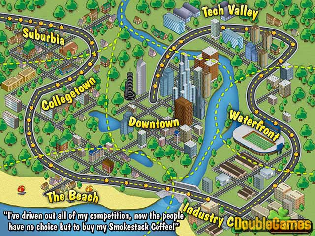 Probuď se a ucítíš kávu! Tovární komín společnosti znečišťuje město špatnou kávou! Otevři si svůj vlastní obchod s kávou a vrať se do města! Vyměň kávové bobule, mléko, cukr a další chutné ingredience k připravě menu plného chutných směsí! Pevně se drž při jízdě na horské dráze skrze 7 sousedství, každý se svou vlastní unikátním obsazení ze 12 postav a 50 výzev, zatímco vylepšuješ svůj obchod, recepty pohoštění a bonusy. Potřebuješ postrčit? Odstartuj to s Coffee Rush!