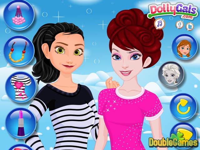 Když princezna Anna odešla ke svého domu pro Barbie, který jí dal na Vánoce Santa Claus, královna Elsa jí nechala dárek jako překvapení. Když se Anna vrátila zpět domů, byla dárkem uchvácena, neboť se jedná o zbrusu nový smartphone. Chce si svým novým telefonem pořídit první selfie se svou milovanou sestrou Elsou, potřebují ale od vás pomoc s oblečením. Na výběr máte spoustu krásných šatů vhodných pro tuto příležitost. Zahrajte si volně dostupnou hru Frozen Selfie Make Up ještě dnes!