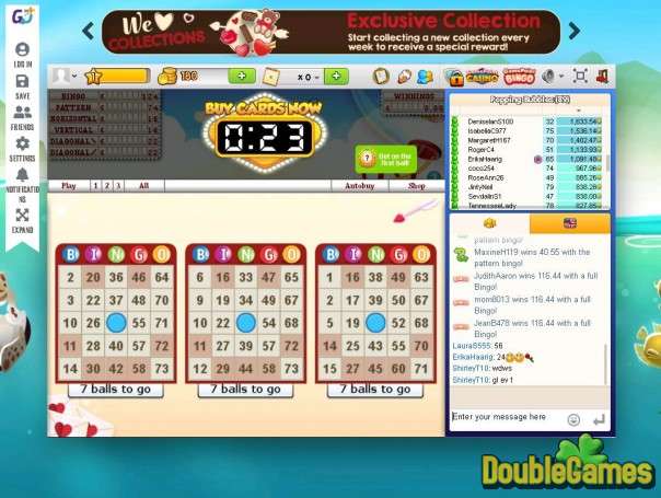 Užijte si klasické bingo! Vyhrajte až 6 cen na kartu! Vyhrajte vodorovnou čáru, svislou čáru, diagonální čáru, vzor nebo celou kartu BINGO. Na GamePoint Bingo můžete hrát v manuálních a automatických místnostech. Místnosti v seznamu „příručky“ jsou pro fanatiky. Baví vás být na vrcholu hry a škrábat čísla, když se míč kutálí kolem? Pak jsou tyto manuálové místnosti určitě tím pravým místem pro vás. Chtěli byste si raději povídat a odpočívat při sledování koulících se míčků? Pak hledejte automatické místnosti. V těchto místnostech za vás uděláme veškeré škrábání. Dávej pozor! Aby byly naše hry ještě zábavnější, přidali jsme sběratelské předměty na naše karty Bingo, sbírejte je všechny, abyste odemkli ještě více speciálních funkcí!