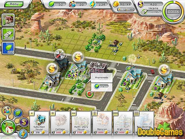 Vyhrňte si rukávy a udělejte ze svých měst co nejzelenější místa pro život v nové povedené budovatelské hře s názvem Green City 2. Ulice těchto měst jsou plné odpadků a staré budovy je potřeba opravit. Popasujte se se všemi záludnými levely a vytvořte ekologicky čistá města. Vaším úkolem bude odstranit všechen nepořádek z ulic a upravit budovy s pomocí ekologicky šetrného materiálu. Dokonce budete i učit své občany, jak se chovat ekologicky ohleduplně. Tak začněte budovat zelená města ještě dnes v nové budovatelské hře Green City 2. Stáhněte si ji ještě dnes a zcela zdarma.