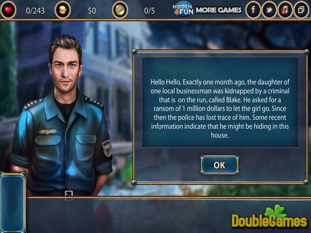 Představte si, že jste policista, který má za úkol vyřešit zajímavý případ! Zajímalo by vás to? Potom vítejte u nové inovativní a zábavné online hry Grim Affairs. Vaším úkolem bude sledovat stopy, které vás dovedou k tomu, kdo unesl Blake, dceru místního obchodníka. Únosce nyní žádá výkupné milion dolarů, které když dostane, dívku propustí. Pomozte policii najít Blake dříve, než bude příliš pozdě, hledejte nejrůznější vodítka, řešte logické hádanky a zachraňte nebohou dívku. Novou volně dostupnou online hru Grim Affairs můžete začít hrát právě teď!