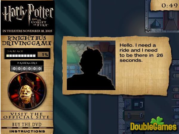 Zápletka filmu "Harry Potter and the Prisoner of Azkaban" je zakomponován do nové on-line hry s názvem Harry Potter: Knight Bus Driving. Máte řidičák? Jestli ne, tak si ho musíte co nejdříve opatřit, protože budete řídit kouzelný autobus! Řídíte Knight Bus, abyste vozili pasažéry, kteří jsou z jiného světa. Máte cíl cesty, kam je musíte dovézt. Postupujte podle zelené šipky, abyste našli pasažéry. Ale musíte pospíchat, na naložení máte jen 30 sekund. Nenaražte do budov, abyste neztráceli body! Dejte se do hry Harry Potter: Knight Bus Driving on-line a procvičte si své řidičské schopnosti!