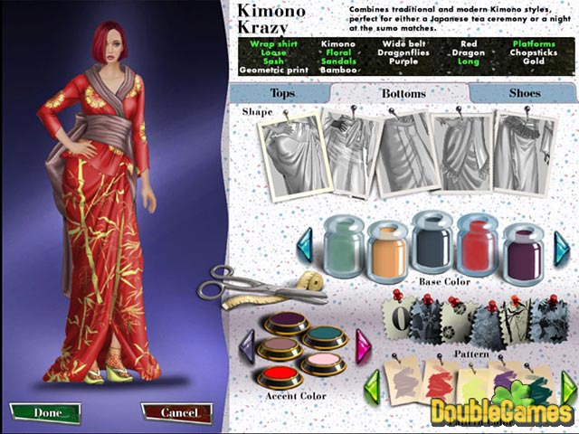 Zavzpomínejte si na svoje dětství, kdy jste si hráli s panenkami, oblékali je, česali jim vlásky a snili o světové výstavě módy. Vaše sny se mohou splnit ve hře s organizováním času. Zapojte svoji fantazii a vaše jméno se stane pojmem od New Yorku a Tokia po Paříž a Miláno! Měňte detaily, barvy, vytvořte svůj vlastní módní styl a stanete na vrcholu žebříčku světových módních návrhářů. A nezapomeňte na casting modelek! YUžijete si pocit, že jste se stali součástí světové módy!