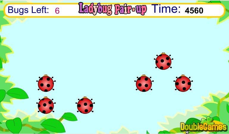 Jestli rádi trávíte volný čas v přírodě a jestli rádi pozorujete život hmyzu a jeho přirozené zvyky, pak je on-line hra s názvem Ladybug Pair Up určena právě vám. Je doba páření berušek! Pomozte jim hledat vhodné protějšky! Dávejte ale dobrý pozor, protože berušky jsou jedna jako druhá! Klikejte na tečkované brouky a pamatujte si, že s každým nesprávným kliknutím se vám zkracuje čas. Tato hra zaujme jak mladé, tak i starší hráče, kteří rádi vzpomínají na mládí. Procvičte si vizuální paměť a pomozte beruškám najít toho pravého nebo tu pravou. Hodně štěstí!