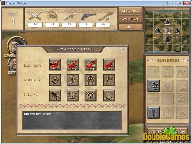 Vítejte v zemi Indiánů - zemi nádherné přírody a statečných lidí! Začněte hrát novou fantastickou strategickou hru The Last Village a pronikněte do světa indiánských kmenů. Vaším hlavním úkolem v této hře bude postavit svou vlastní vesnici a ochránit ji před nájezdy nepřátel. Obchodujte se zbraněmi, zefektivněte zemědělství a vytrénujte jednotky a ochraňte v této adventuře s tématikou amerických domorodých kmenů odkaz vašich předků. Dokážete přežít 75 dlouhých dní? Zjistěte to při hraní hry The Last Village, která je vám k dispozici zcela zdarma. Hodně štěstí a příjemnou zábavu!