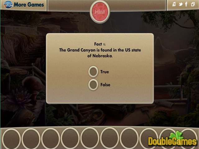 Dnešní nové skrytý objekt hra není jednoduchá hra, on-line, kde musíte najít a vyzvednout položky. To je také kvíz, který znamená, že na konci každé úrovně se bude záludná otázka na vás čeká. Hra je o dobře známé národní poklady, takže otázky budou v souvislosti s nimi také. Ujistěte se, že dát správnou odpověď, protože pokud odpovíte špatně, budete muset znovu restartovat úroveň. Bavte se hraní novou on-line hru National Treasures.
